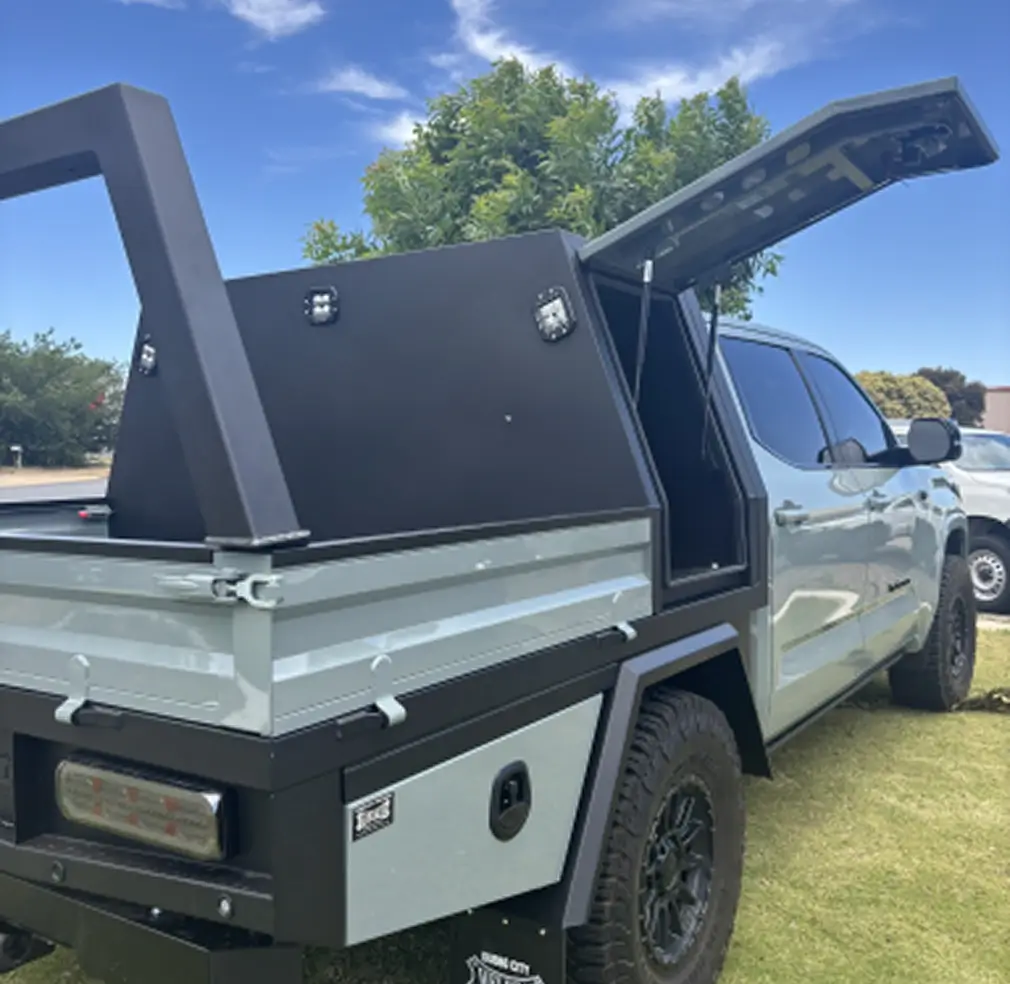 Toyota utes set the standard for reliability and our builds rise to meet it. Discover how our heavy duty Hilux trays, fully kitted out LandCruiser canopies and custom Toyota trade packs are designed for the Central West. Each one is crafted in Dubbo using Australian made RHS steel or aluminium and finished for strength without unnecessary bulk.